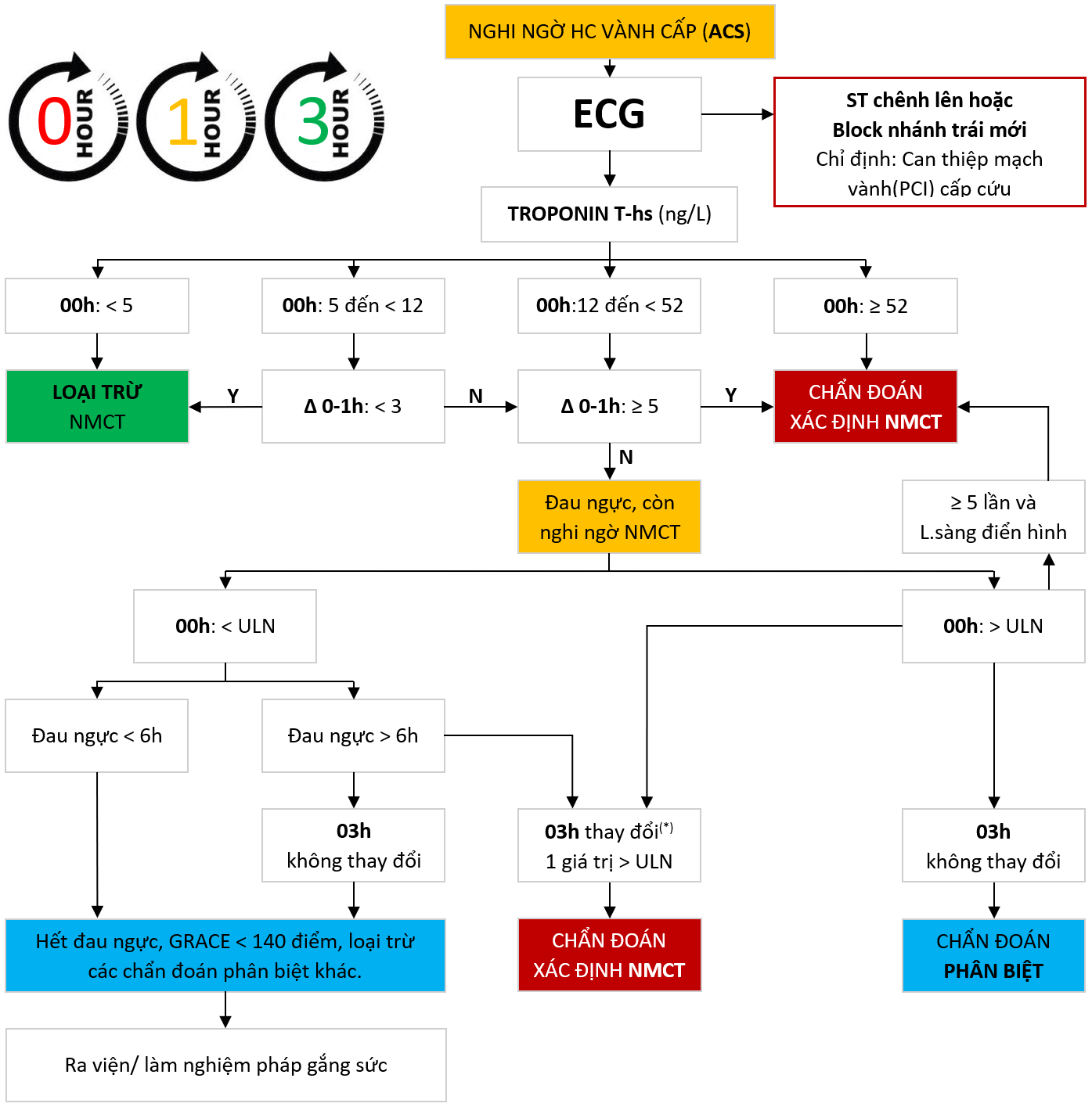 Áp dụng phác đồ 01 giờ và 03 giờ trong chẩn đoán hội chứng vành cấp (ACS) ST không chênh lên.