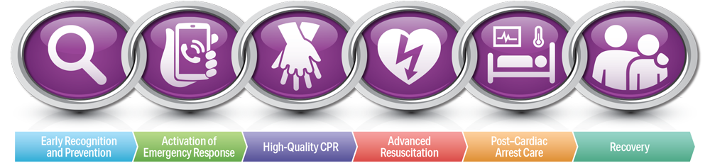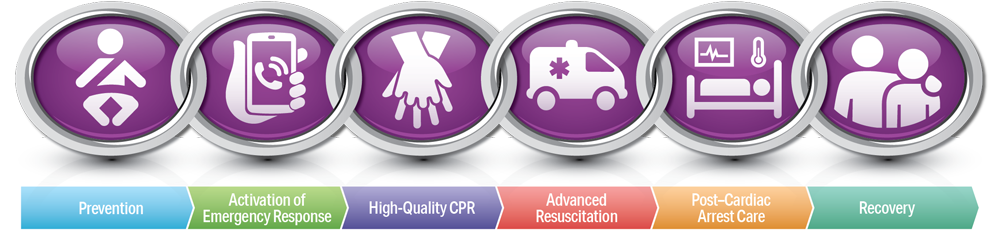 | Chuỗi sống còn | 5 liên kết cho cả hai chuỗi (chuỗi sống còn trong bệnh viện [IHCA] và ngoài bệnh viện [OHCA]) | 6 liên kết cho cả hai chuỗi sống còn (chuỗi sống còn trong bệnh viện [IHCA] và ngoài bệnh viện [OHCA]); được thêm 1 liên kết Hồi Phục (Recovery) đến ở cuối của cả hai chuỗi |