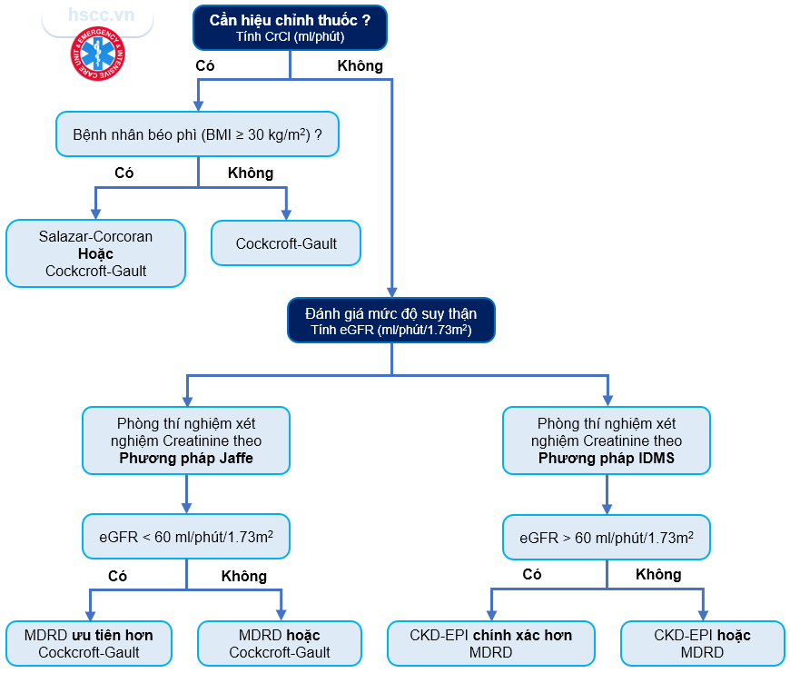 - Nếu eGFR < 60 (ml/ph/1.73m2 da) thì MDRD nên ưu tiên hơn Cockcroft-Gault.