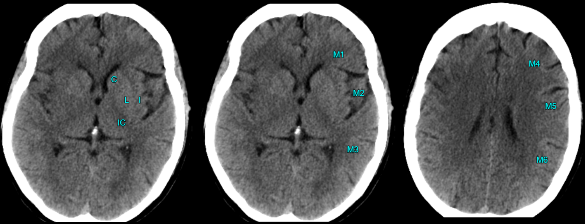 Điểm CTscan sớm của Chương trình Đột quỵ Alberta (ASPECTS) giúp đánh giá vùng tổn thương do tắc/ hẹp cấp tính chủ yếu thuộc vùng cấp máu của động mạch não giữa (MCA).